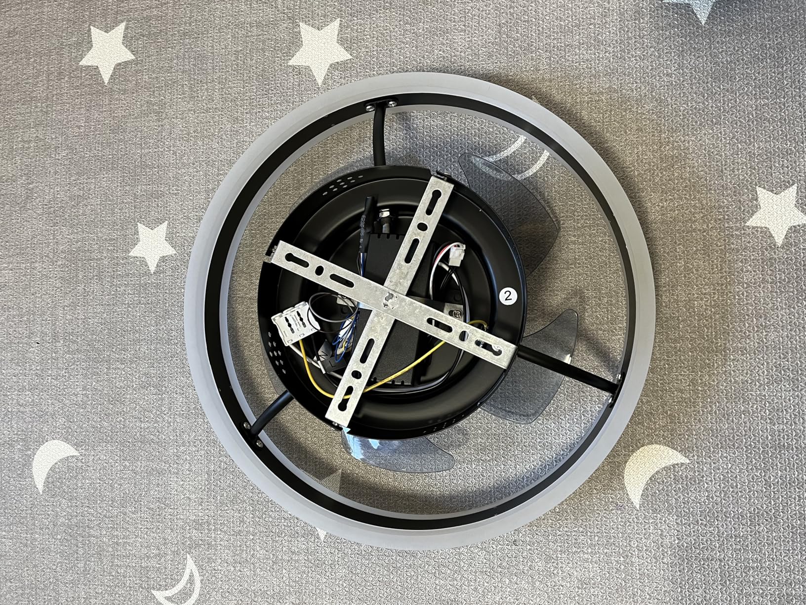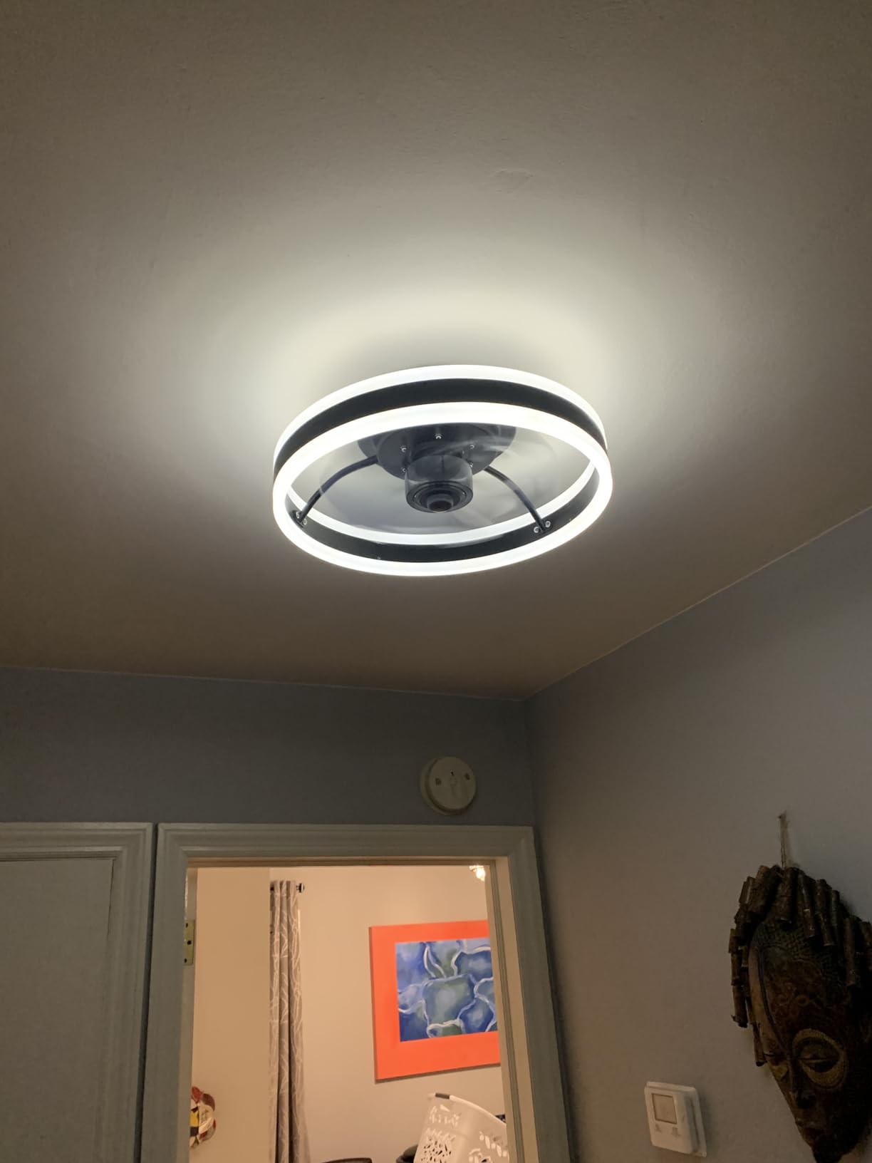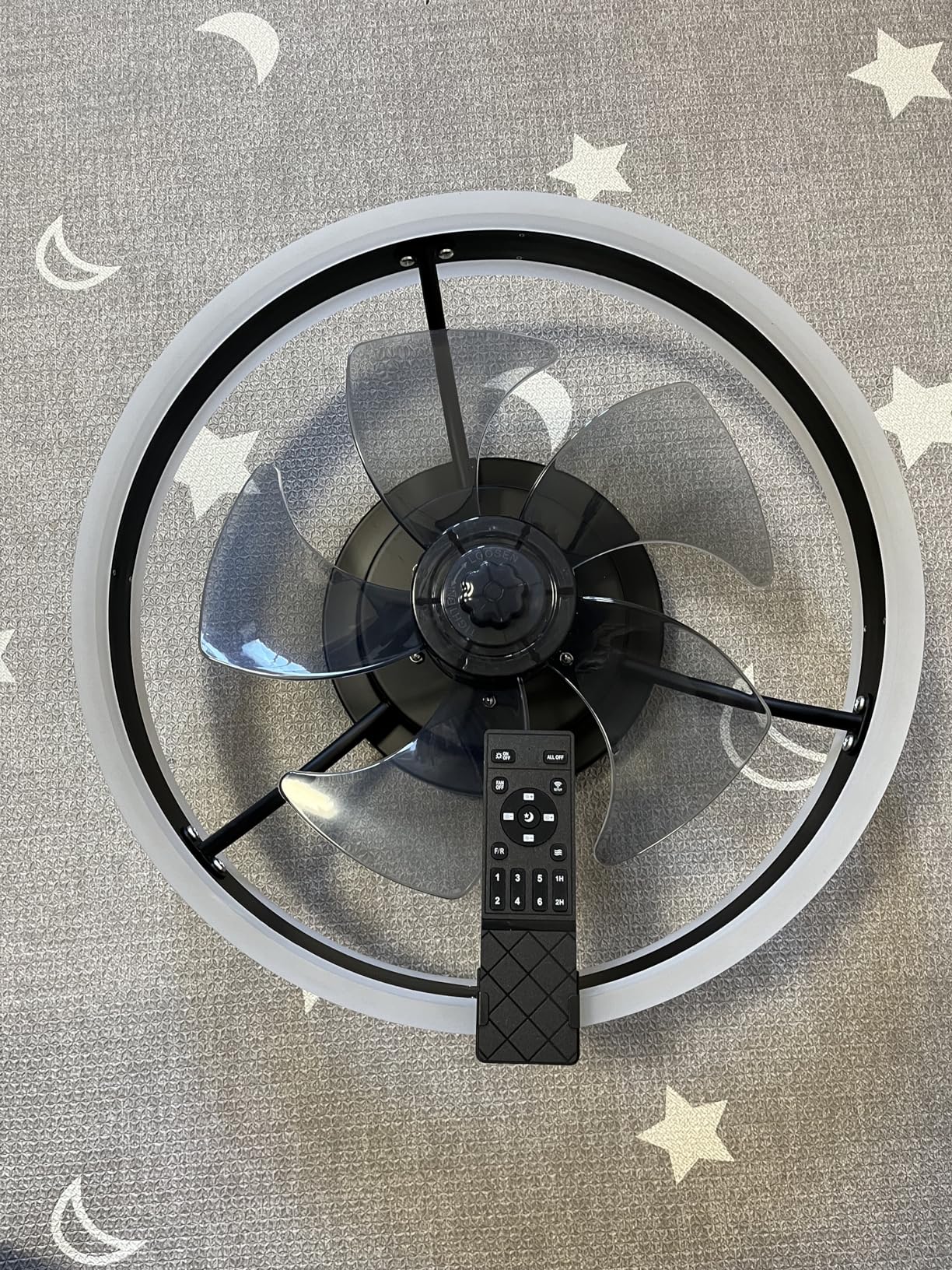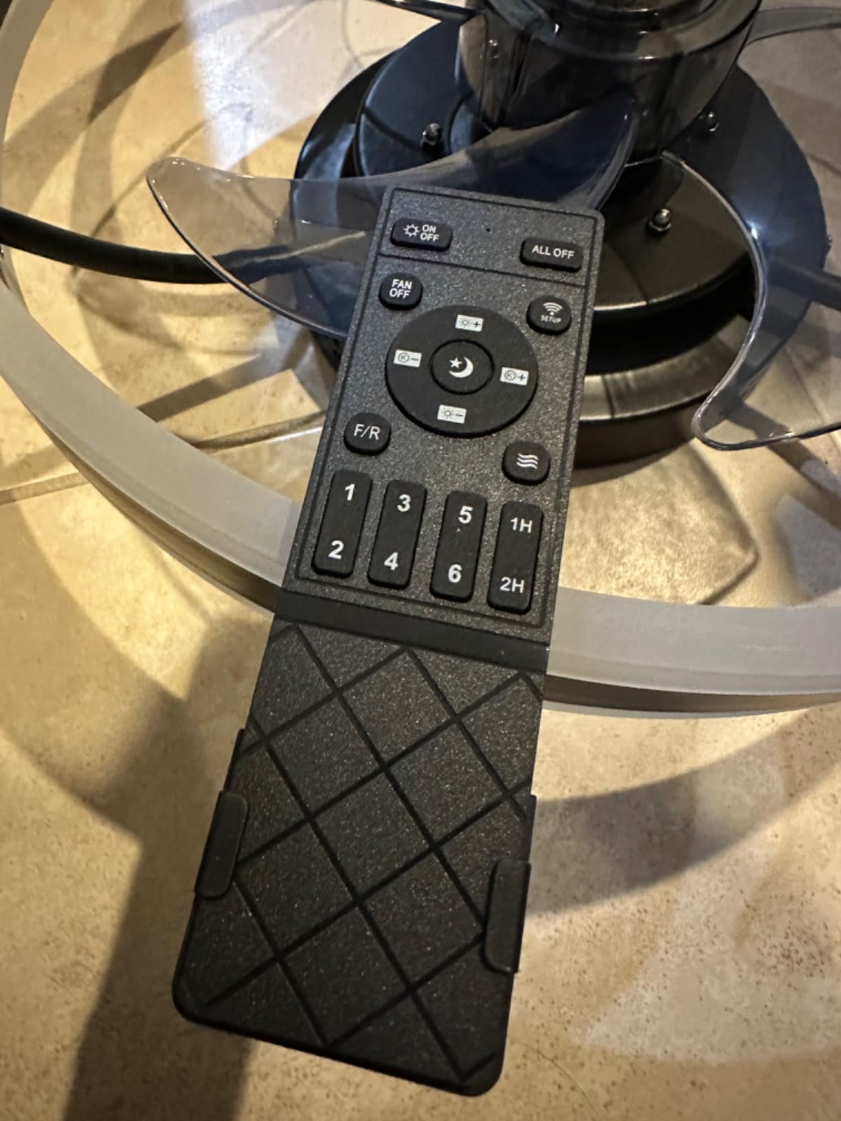 - Adjustable dimming, color temperature, and 6-speed airflow settings